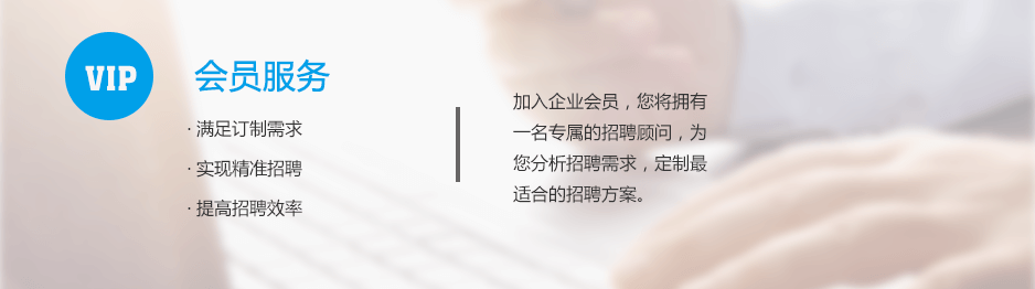 會員服務屬于網絡平臺服務,基于龐大活躍的網絡平臺,滿足客戶對招聘職位的訂制需求。會員可以擁有獨立的企業招聘后臺,企業客戶可自行發布與管理招聘職位,使企業的招聘信息傳遞給相關的求職者。會員服務能夠滿足企業的日常招聘、人才儲備等招聘需求,并能根據具體的職位要求,實現精準化招聘,提高招聘效率。